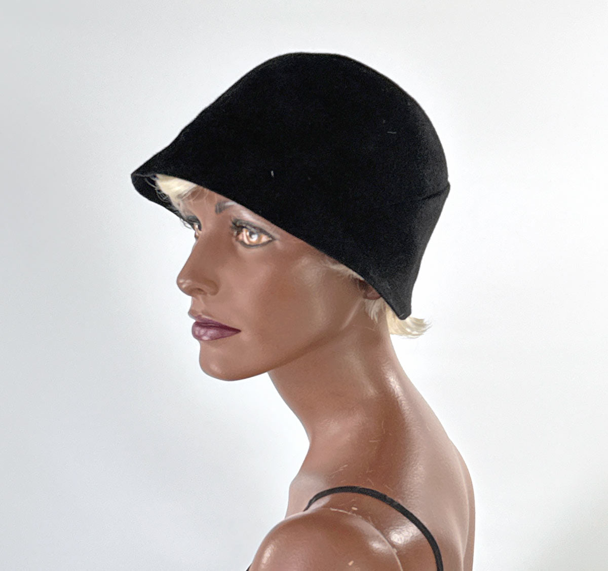 20s Tucked Cloche Hat Vintage Flapper Narrow Brim Large VFG
