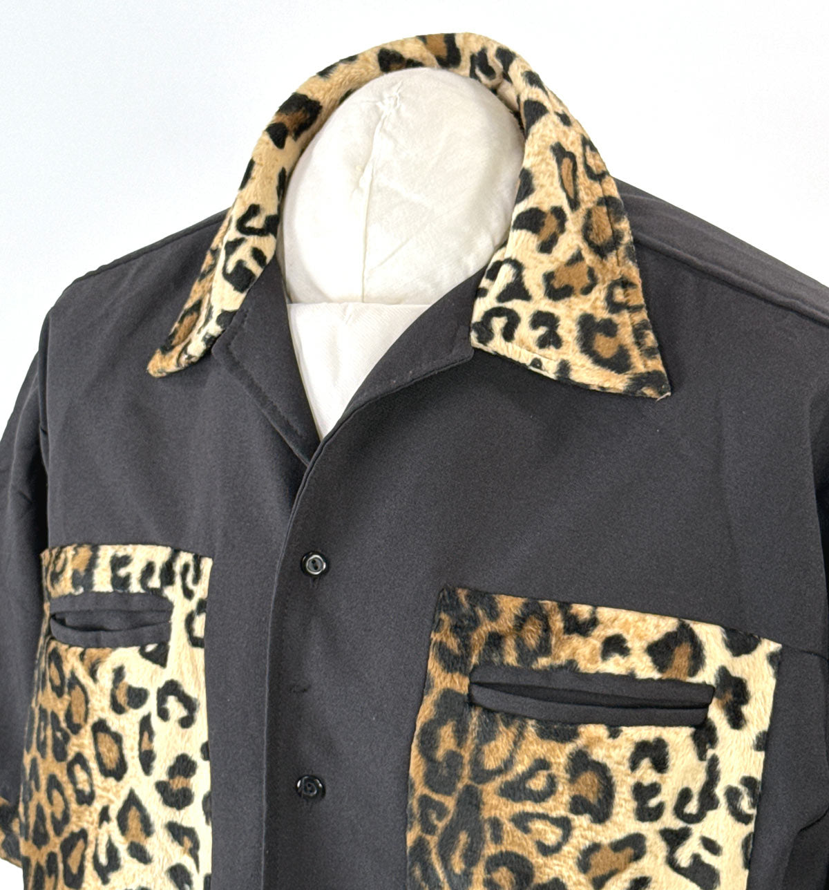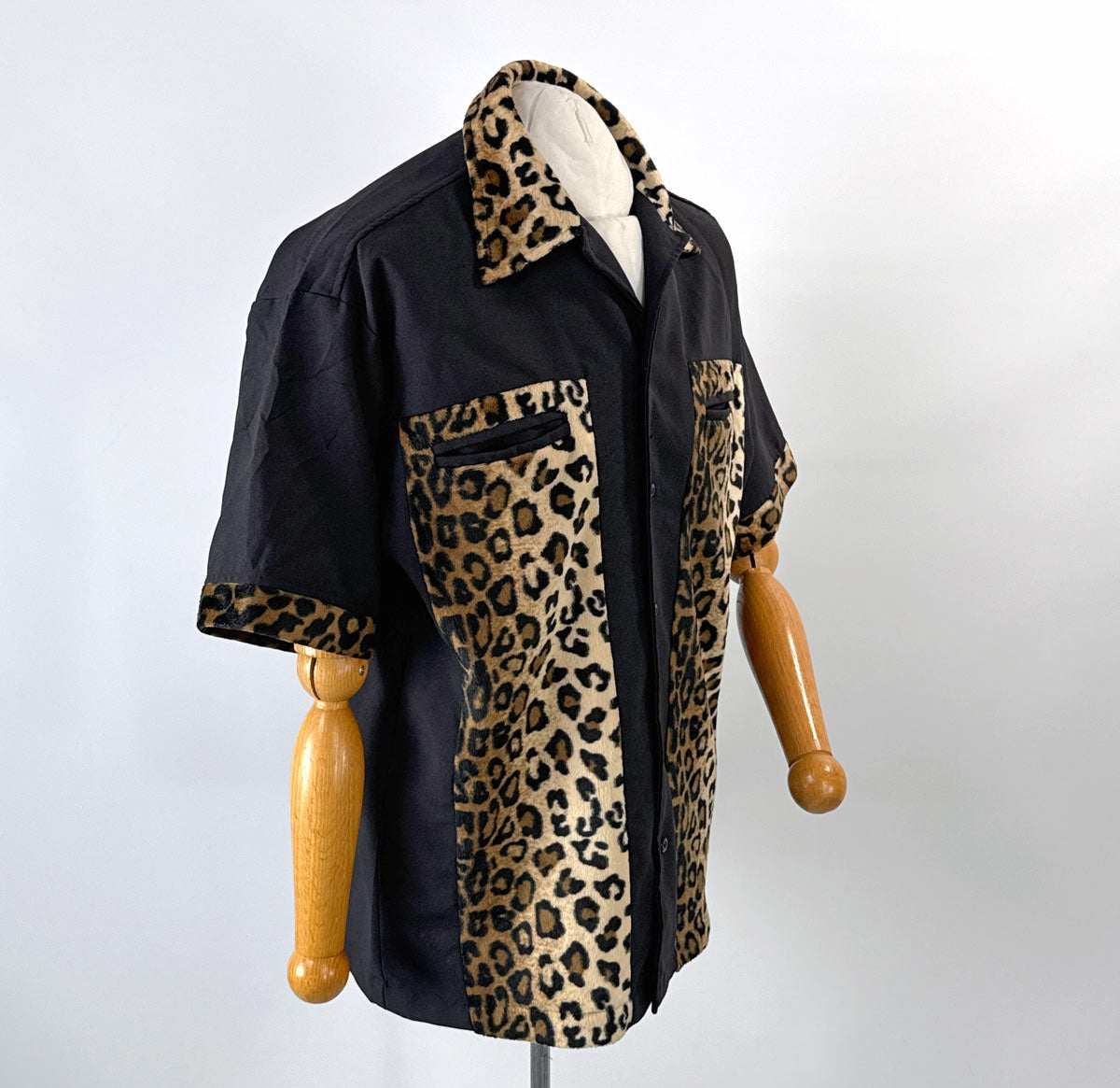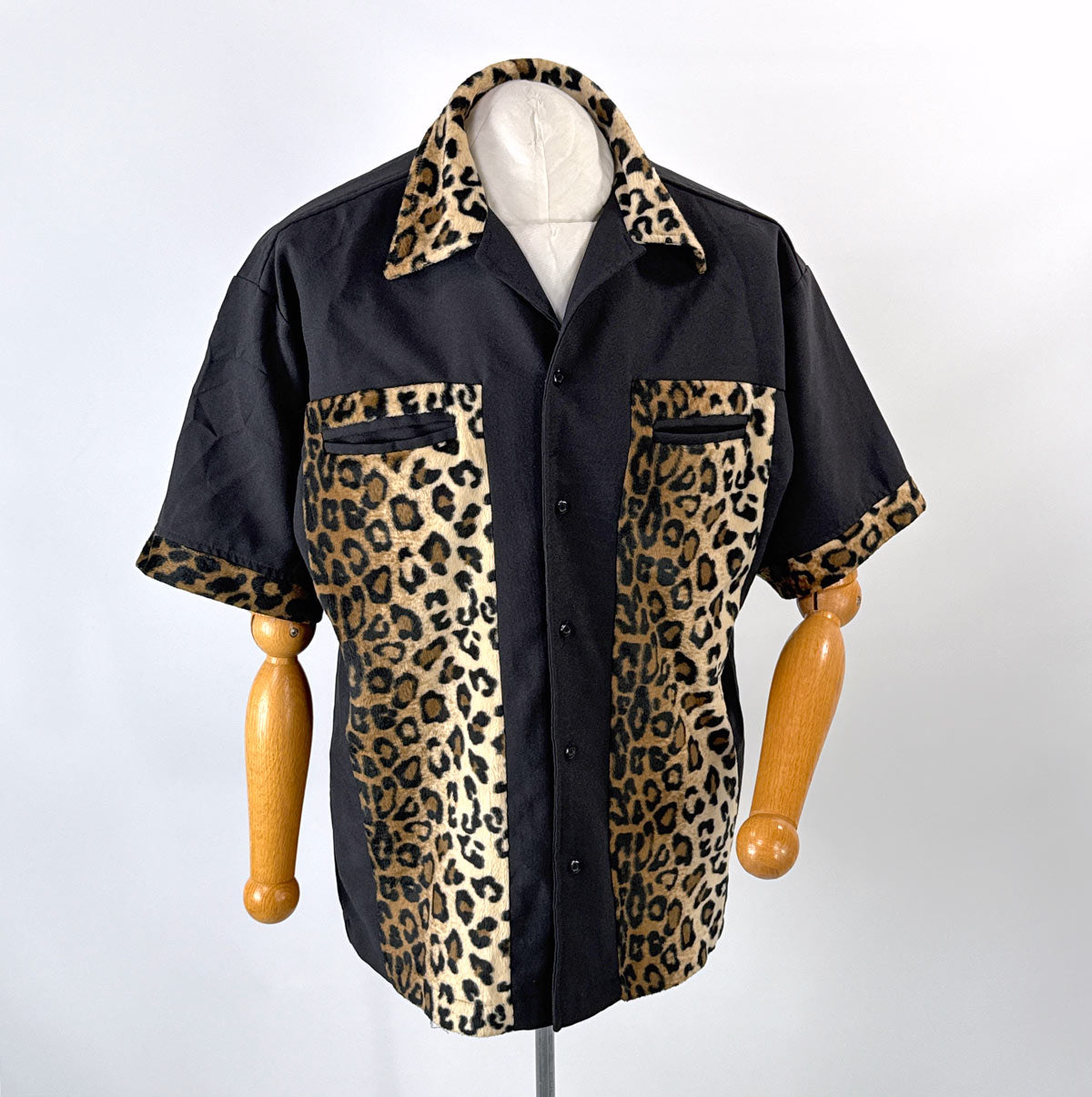 Vintage Men's Camp Shirt 90s Y2K Guayabera Style Faux Leopard Print Large VFG