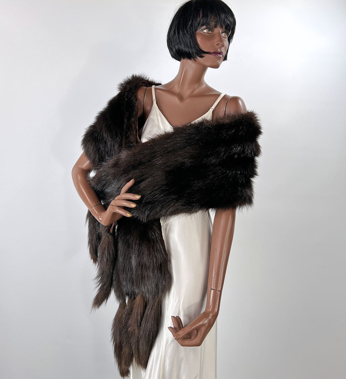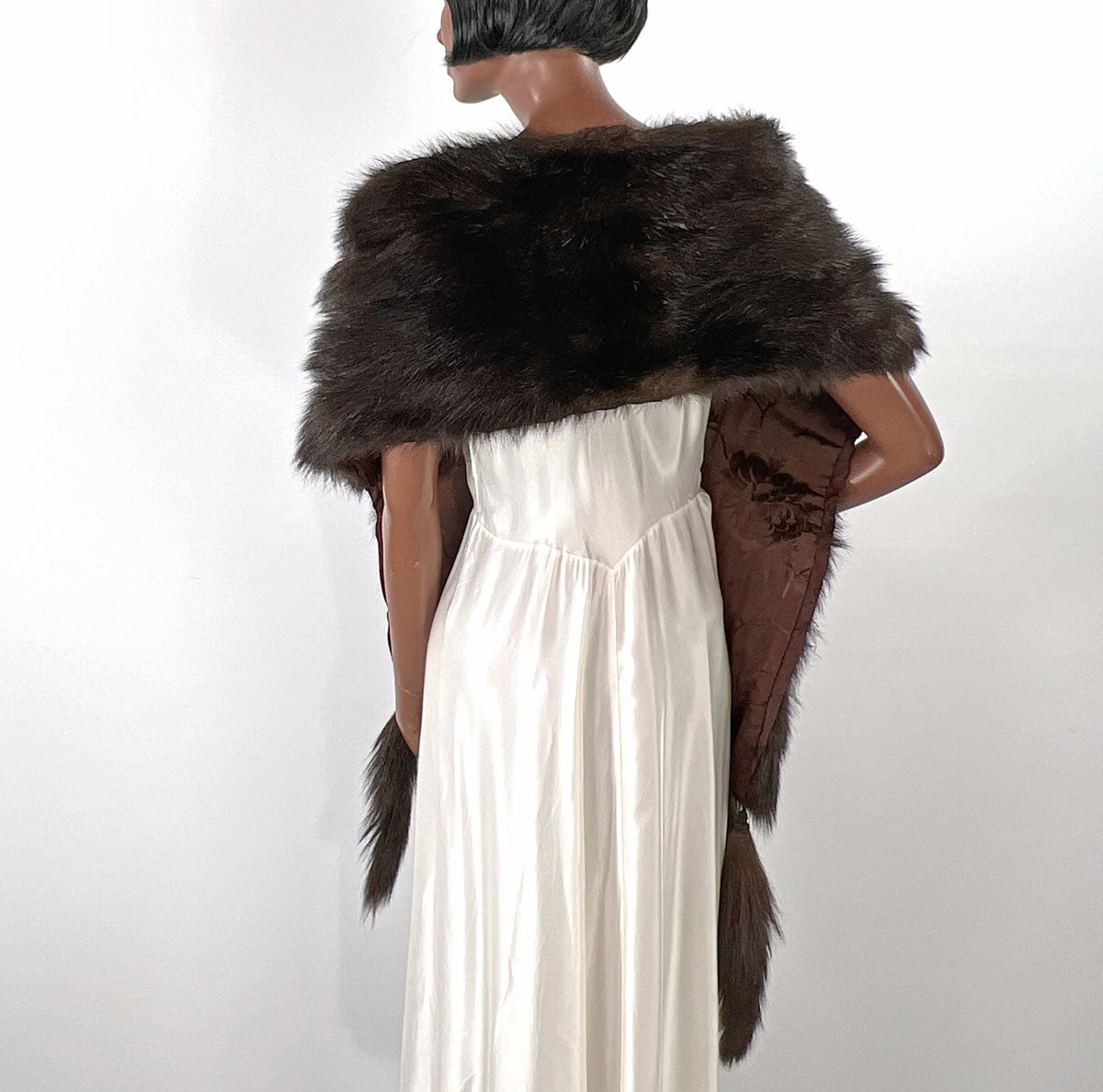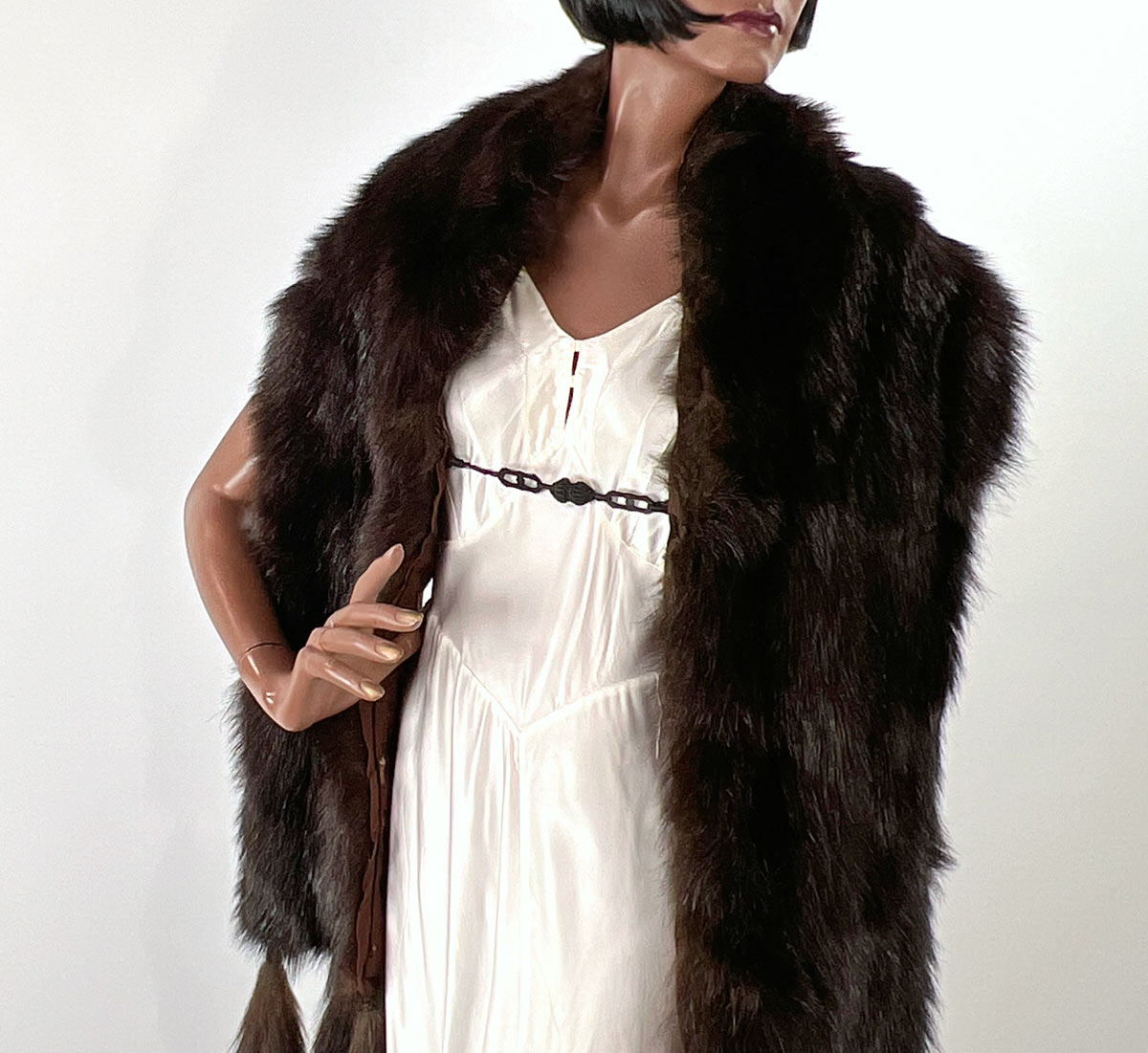 Antique Fur Stole Oversized Shawl 1910s 20s Vintage Tail Fringe Henkel VFG