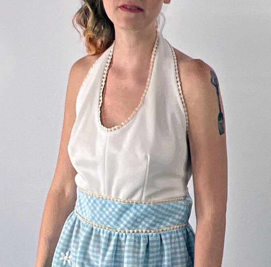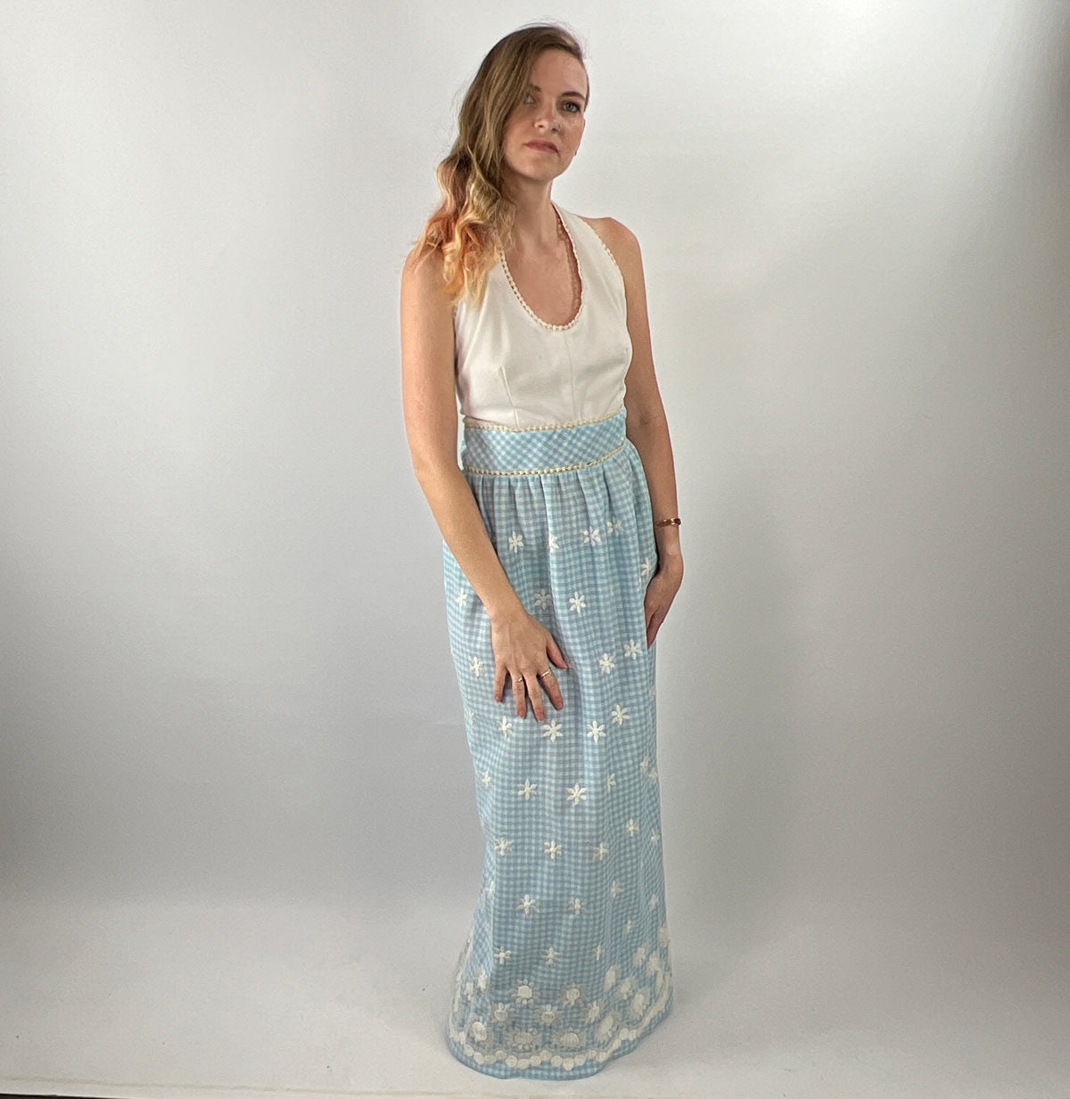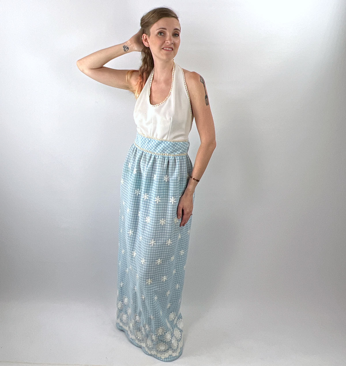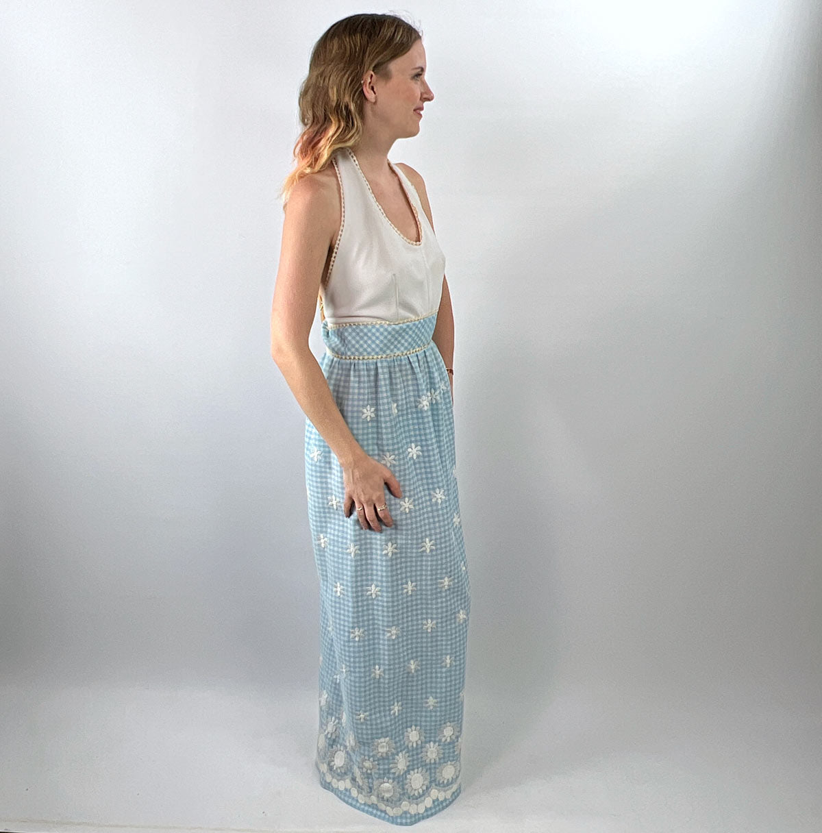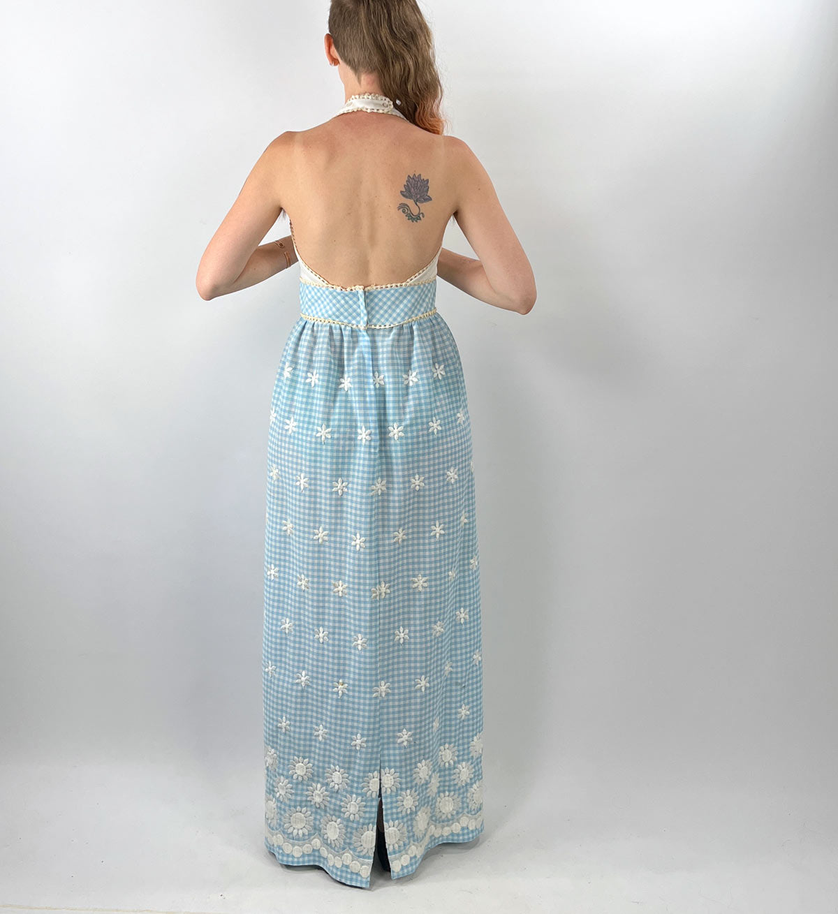 60s Maxi Dress Halter Neck Gingham Medium Vicky Vaughn VFG