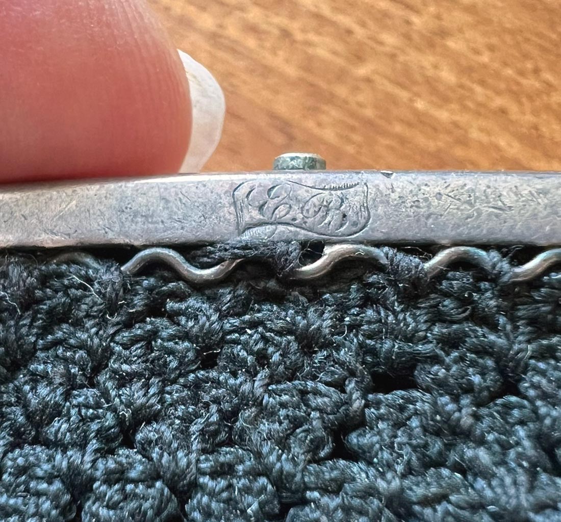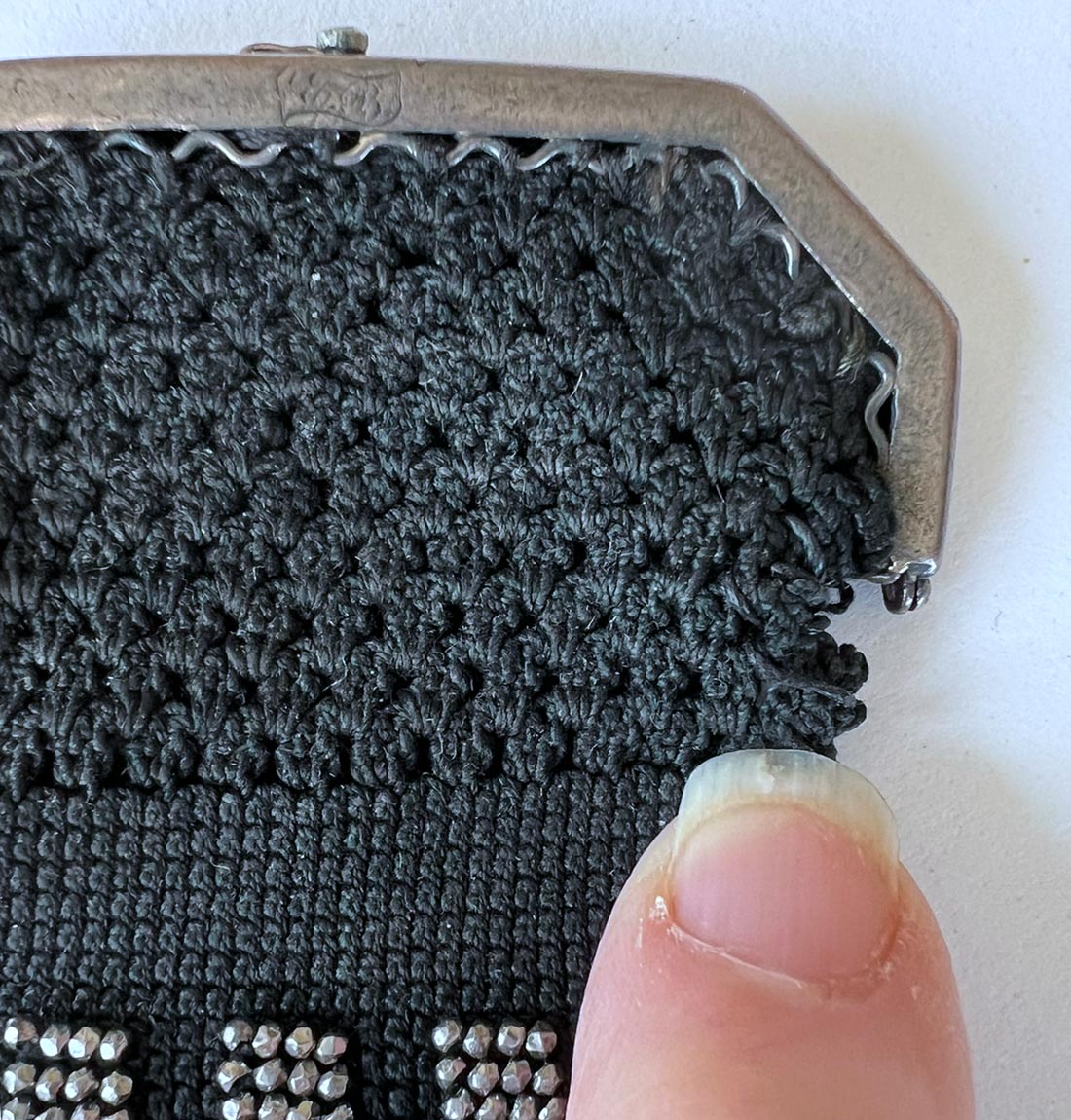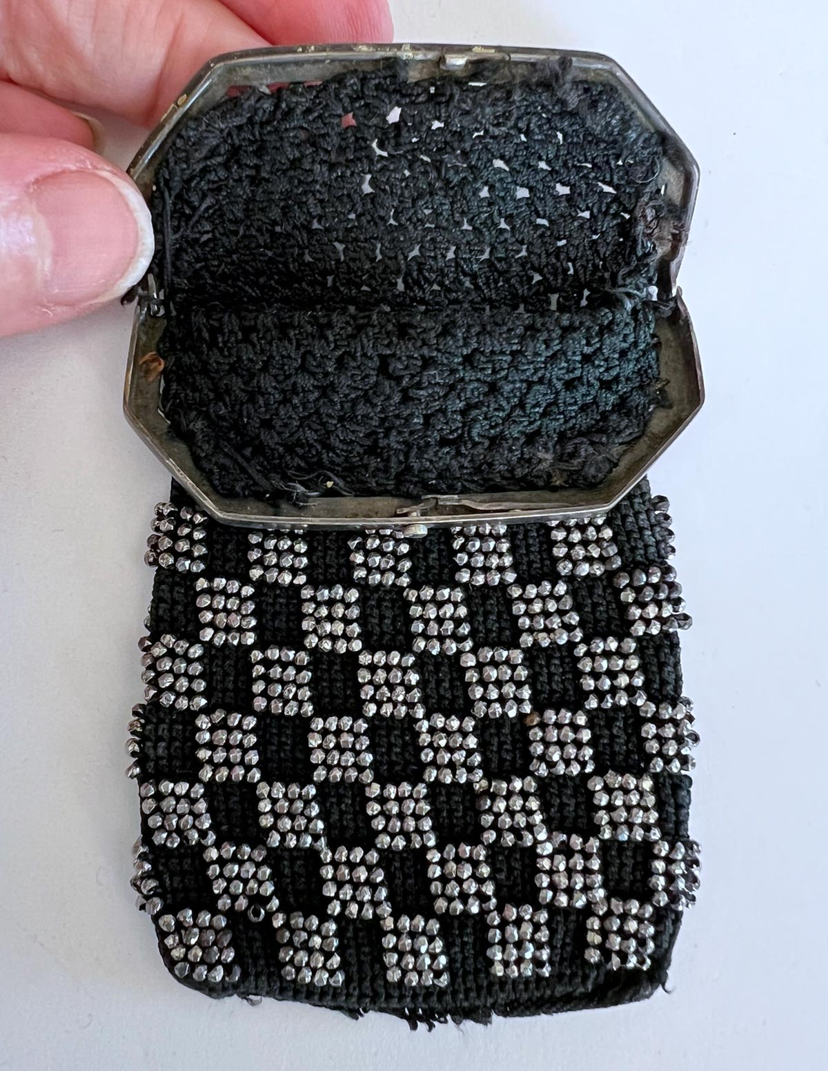 20s Steel Cut Beaded Coin Purse Black & Silver Checkerboard Antique VFG