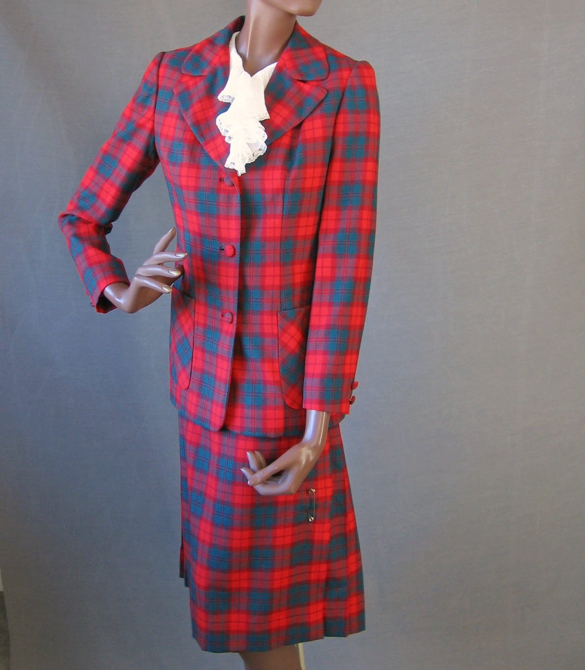 Women's Vintage 60s Skirt Jacket Suit Set MacNab Tartan Plaid Scarf Kilt M Aljean Canada VFG