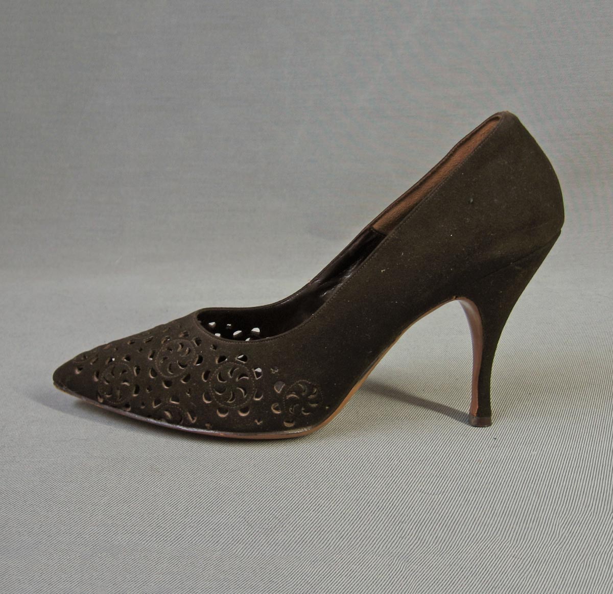 50s shoes range from the pointy toed spike heeled stilettos to saddle shoes and penny loafers. Fashionable eyeglasses were cat-eye for women, preferably with rhinestones embedded. Women never went out without their purse, and rarely without their girdle on.