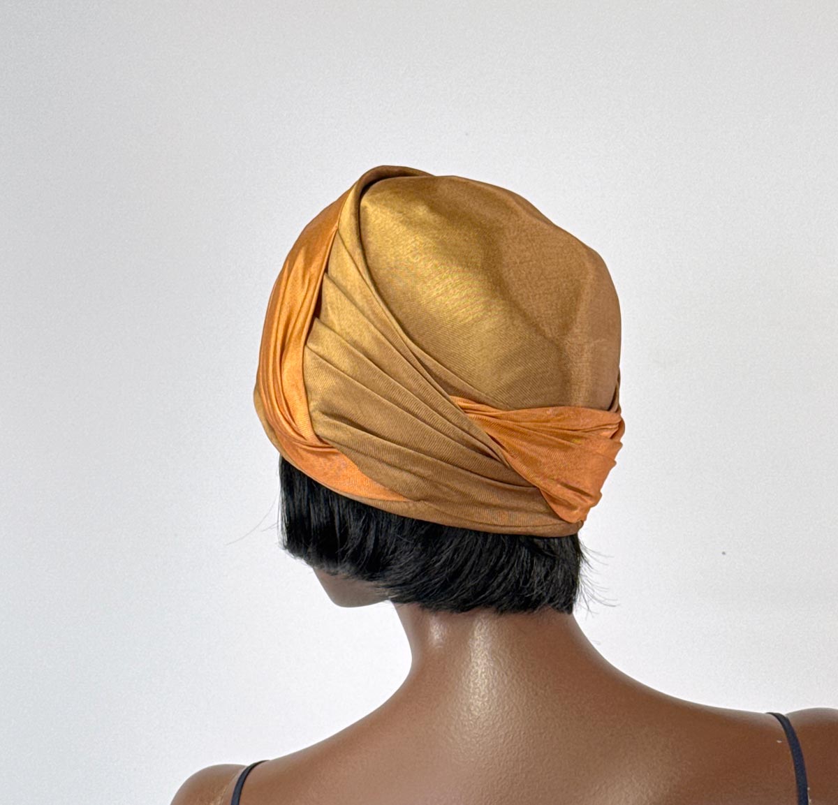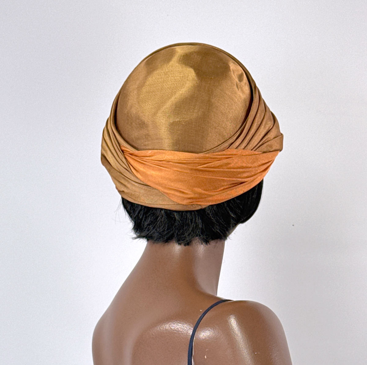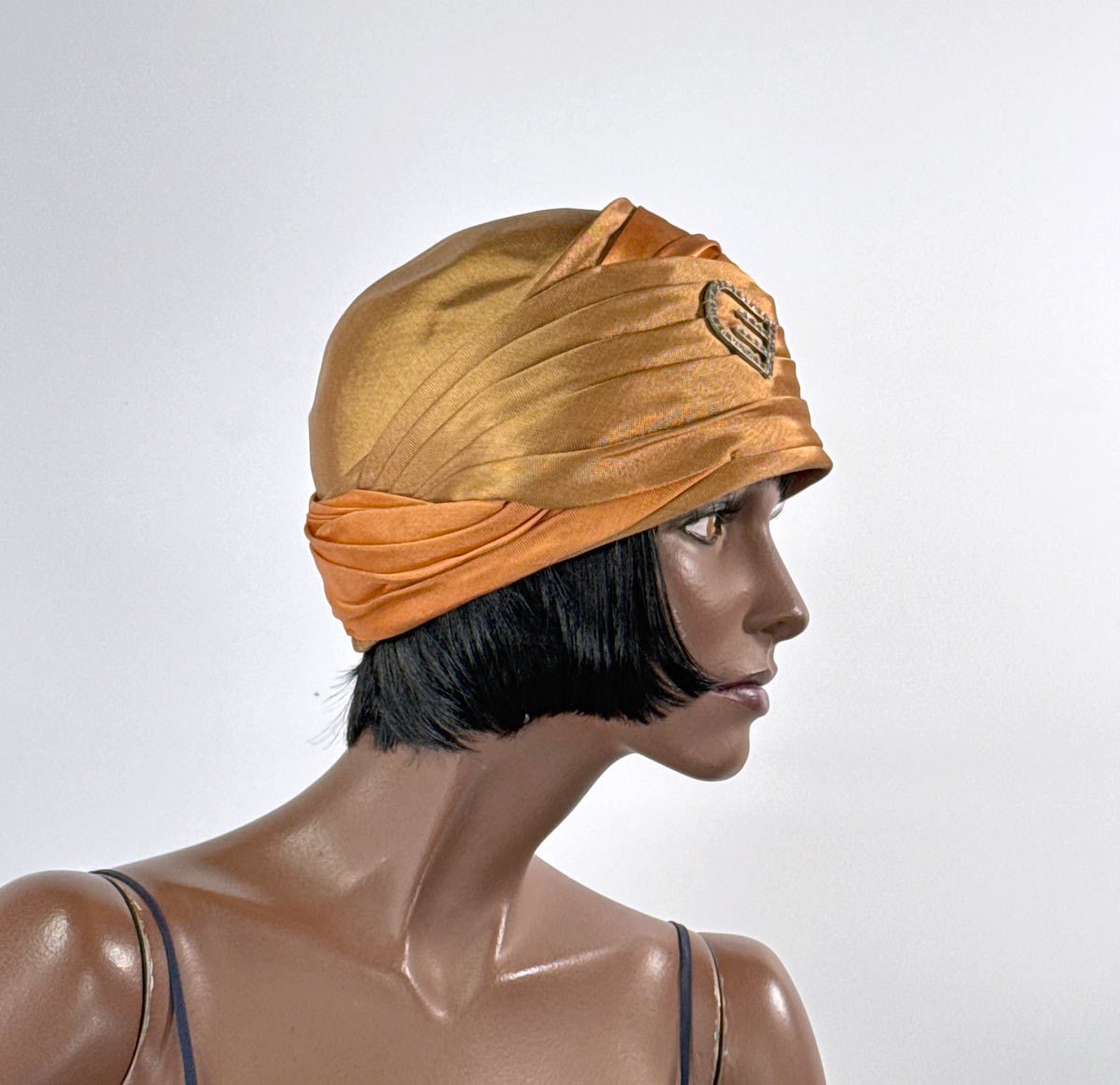 20s Vintage Cloche Draped Turban Style Orange & Gold Rhinestone Clip Hersh's VFG
